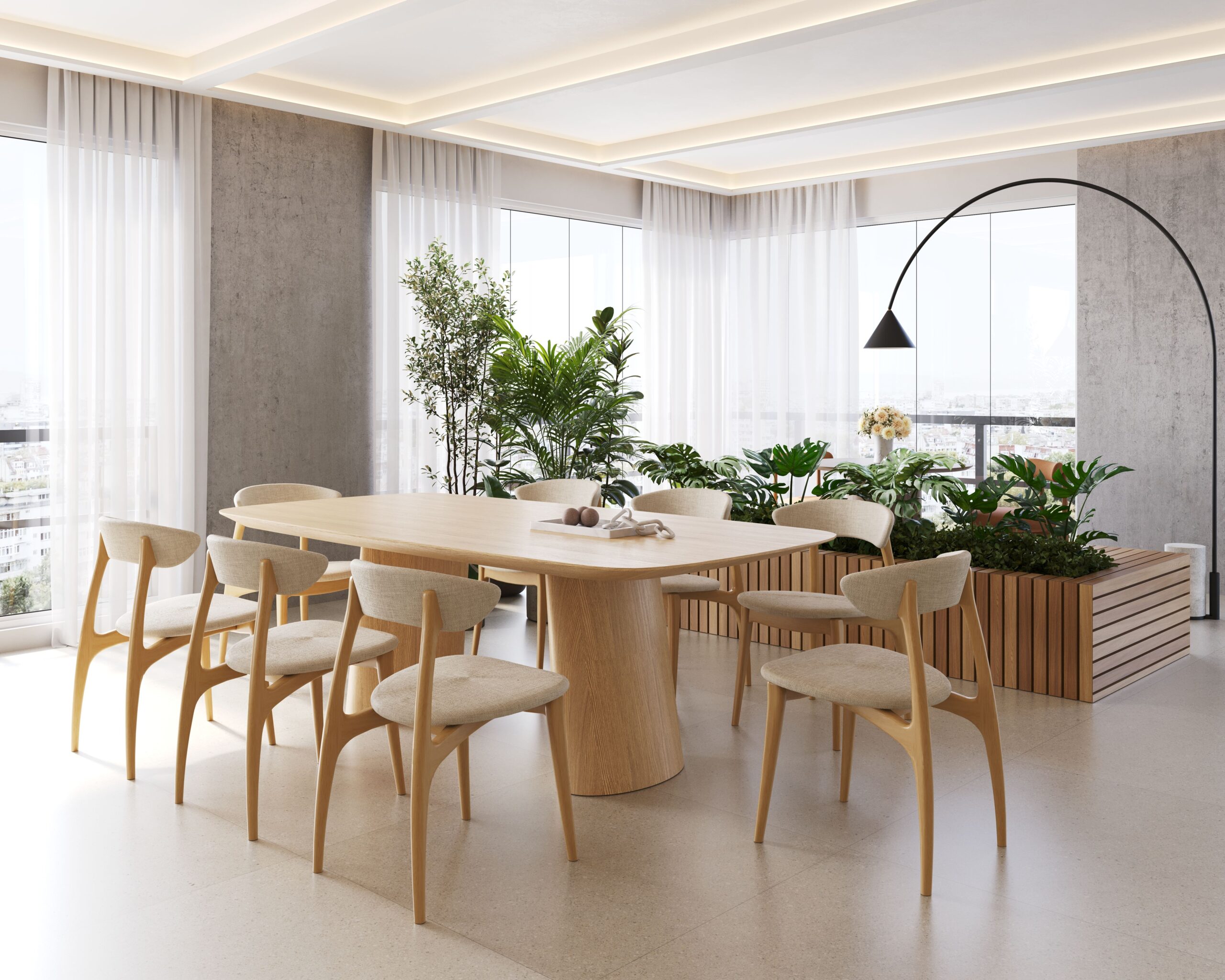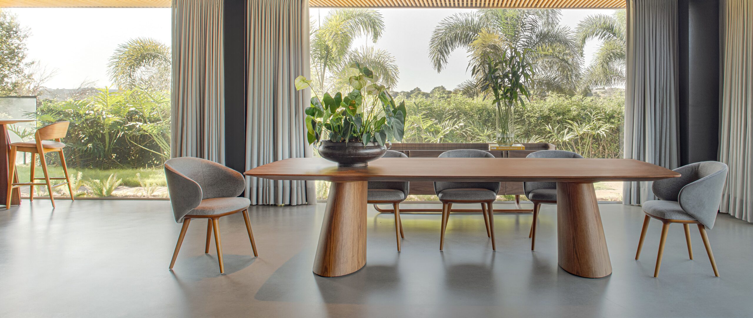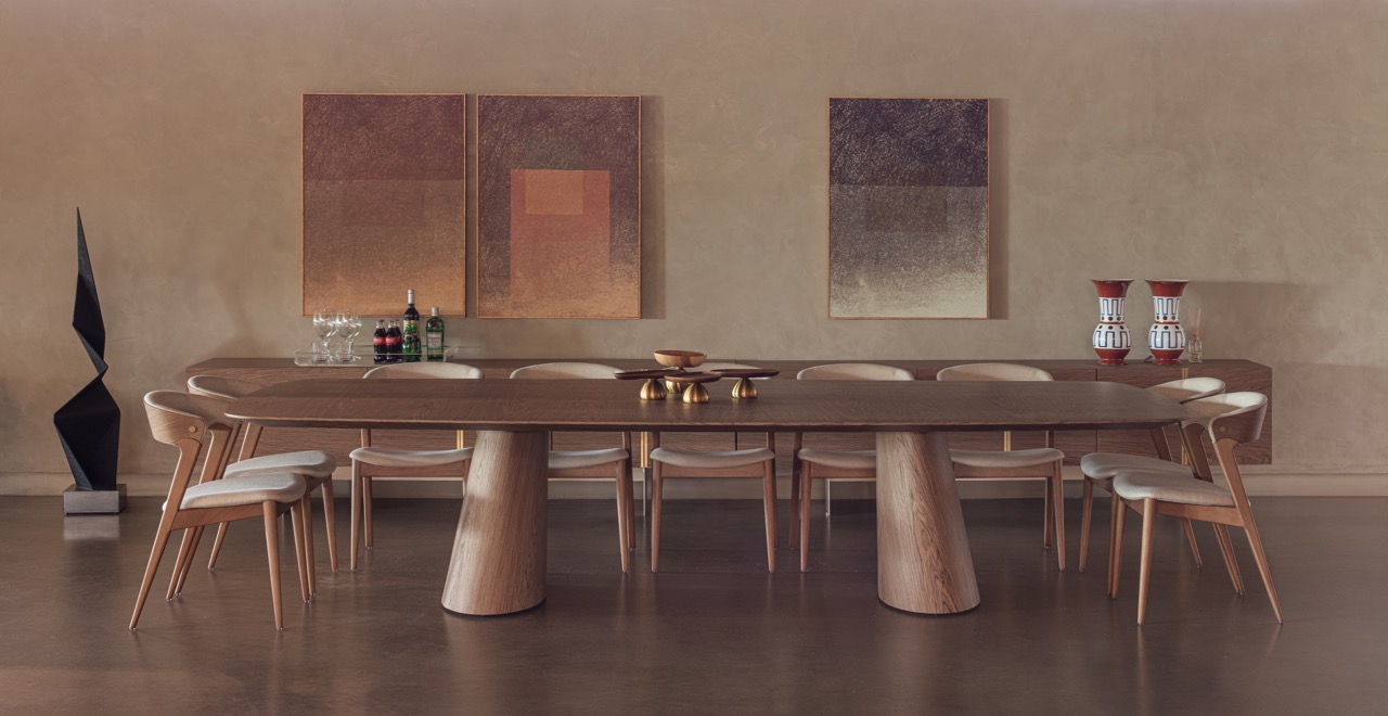 Nessa proposta, a mesa de jantar deixa de ser um item comum levando sofisticação e naturalidade ao ambiente.