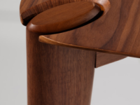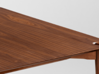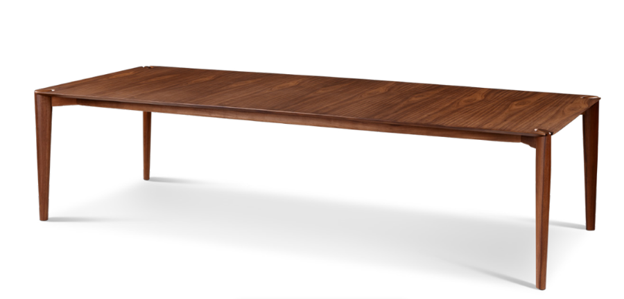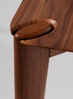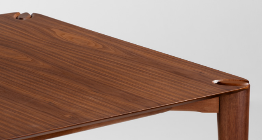 Pés: Quatro pés finos, retos e levemente afunilados, integrados às quinas da mesa.