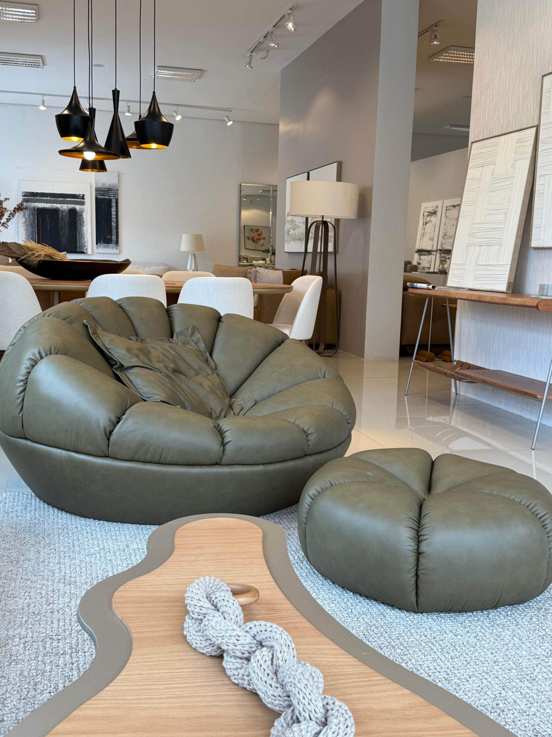 A ideia da Poltrona Bergamota foi inspirada nessa fruta tão tradicional do nosso querido Rio Grande do Sul. Possui uma estética do frio envolvida, trazendo técnica de tapeçaria em um produto robusto e imponente no ambiente.